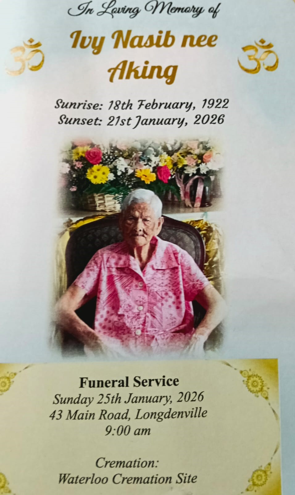 This gentle soul, Ivy Nasib, did not just live long. She lived deeply.